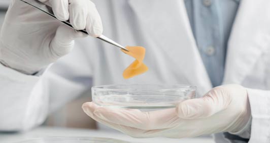 Matriz dérmica acelular bioactiva de origen porcino, desarrollada especialmente para regeneración ósea y de tejidos blandos en odontología. Mantiene intactas las fibras de colágeno, favoreciendo la vascularización y la integración natural.